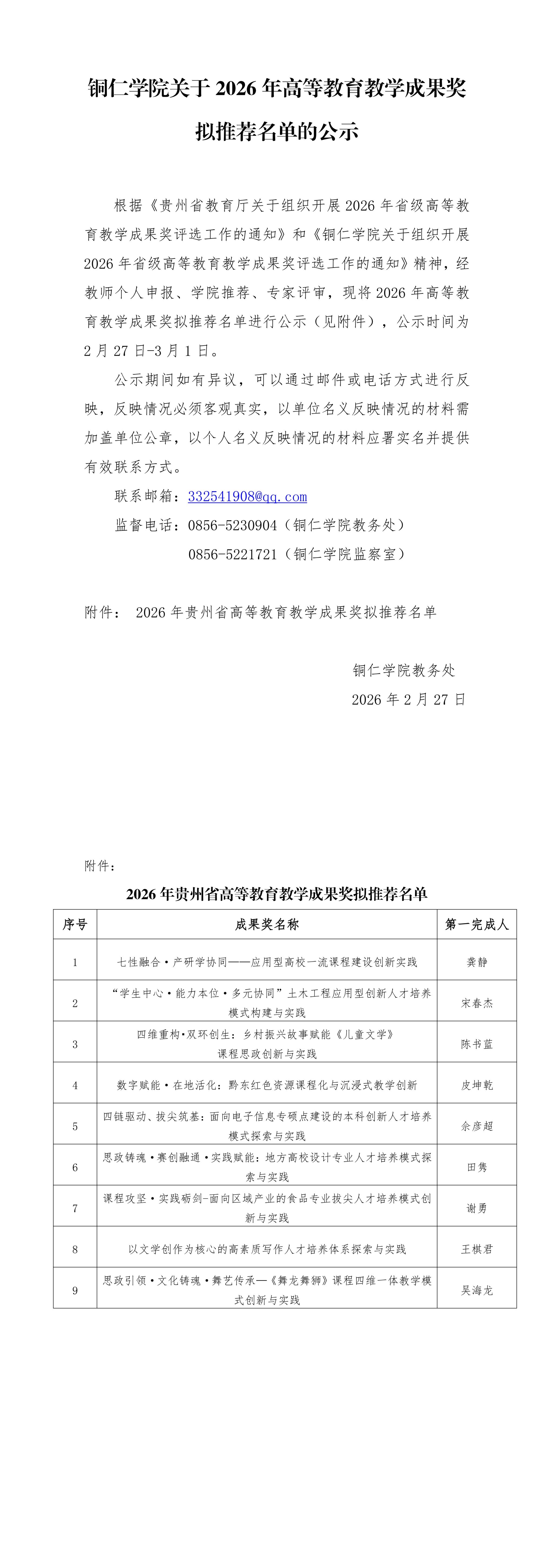 bv伟德国际1946关于2026年高等教育教学成果奖拟推荐名单的公示