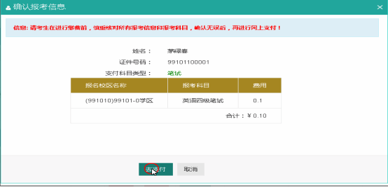 报名完成后,点击“支付”按钮
