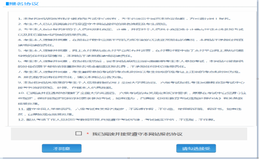 报名协议页面,勾选同意