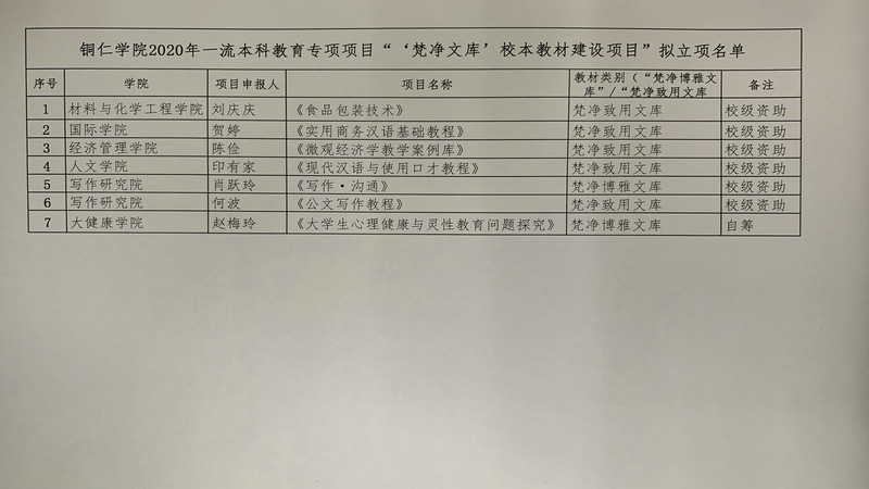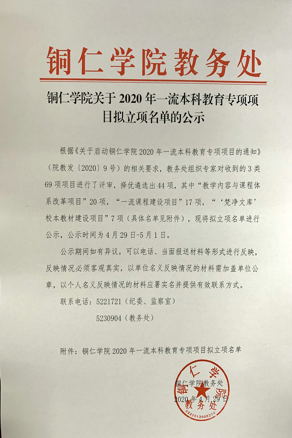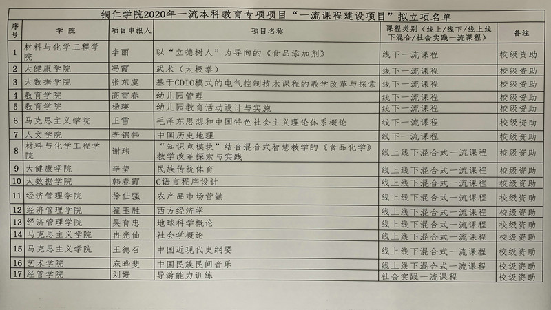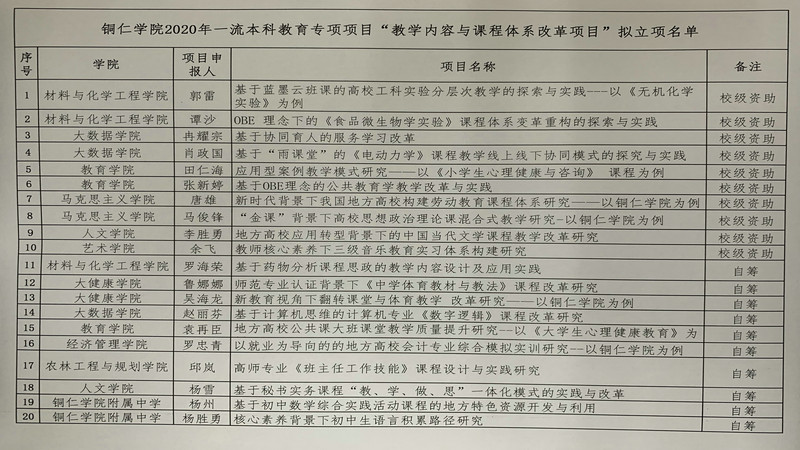 bv伟德国际1946关于2020年一流本科教育专项项目拟立项名单的公示
