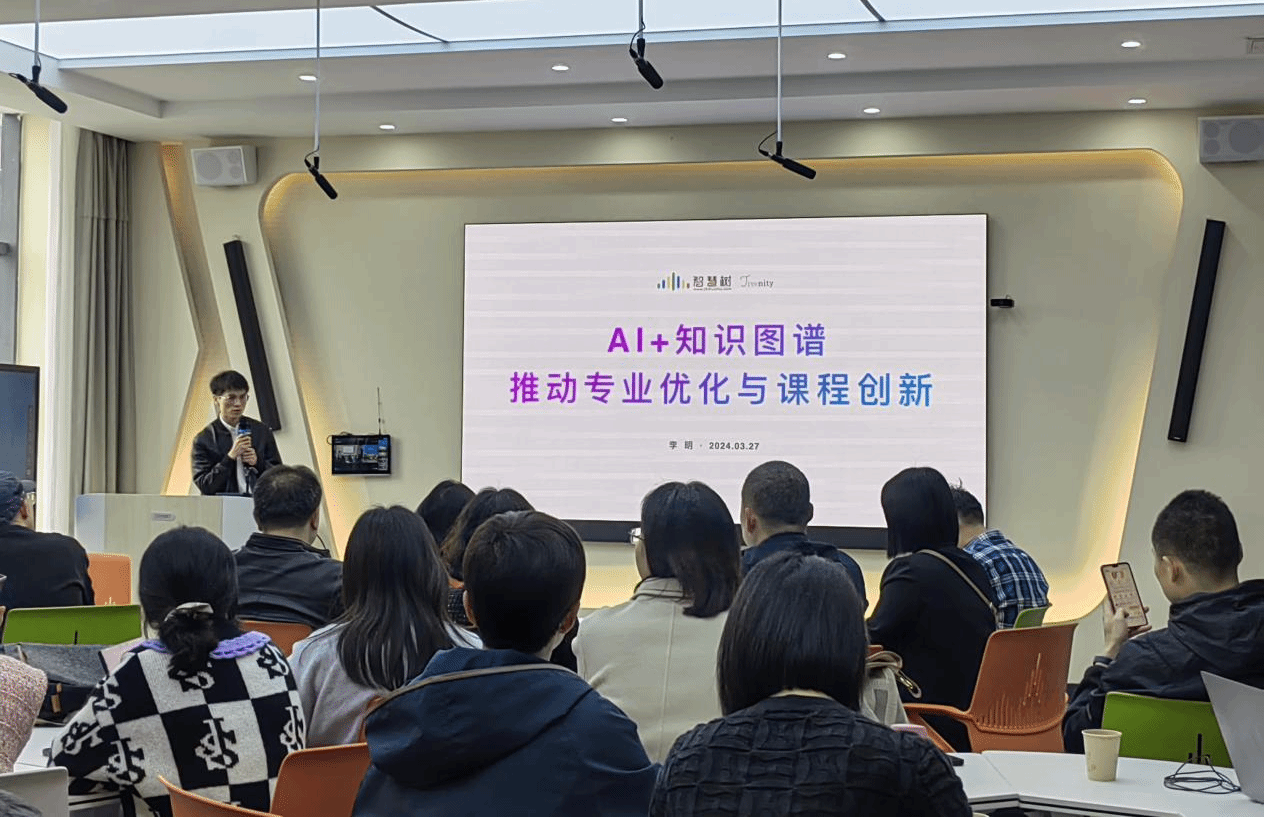 活动开场,夏林丽教授结合工作实际,以AI“文本生成”功能为例,向大家展示了AI大模型在教学中的实际应用场景,生动展示了数字化助力课程教学的魅力之后,李明经理结合国家与地方101计划、学科专业交叉融合等真实工作案例,深入讲解了AI与知识图谱推动专业优化与课程创新的实际应用展示了专业建设和课程建设的新视角和方向