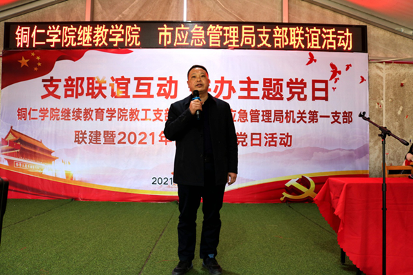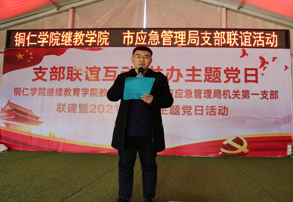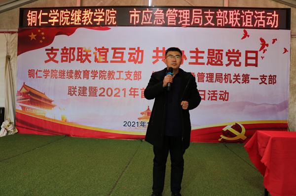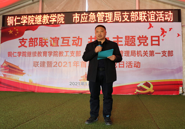 为了加强基层党组织建设,夯实党的执政基础,强化党支部政治功能,进一步提高基层党建活动实效,立足实际情况开展形式多样的党建活动,2021年1月8日下午,我院教工支部联合铜仁市应急管理局机关第一支部共同开展主题为“支部联谊互动,共办主题党日”支部联建联谊暨2021年首月主题党日活动。