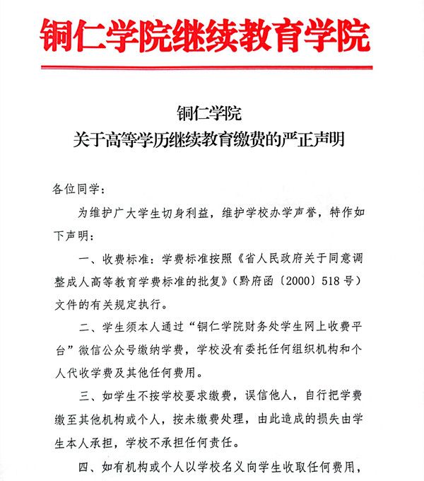 bv伟德国际1946关于高等学历继续教育缴费的严正声明