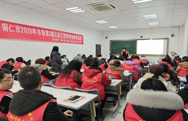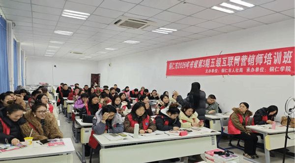 为深入落实“技能贵州”行动要求,助力铜仁市数字经济高质量发展,精准对接新业态技能人才需求,1月20日,由铜仁市人力资源和社会保障局主办、bv伟德国际1946继续教育学院承办的2026年第一期互联网营销师(五级)职业技能培训班正式开班。60名来自全市各地的待业青年、灵活就业者、企业职工、新业态转型人员等学员齐聚一堂,共同开启数字营销技能提升之旅。