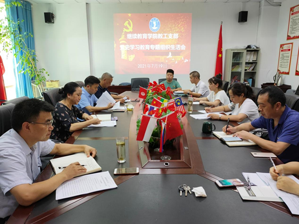 7月19日,bv伟德国际1946继续教育学院教工支部在院会议室召开党史学习教育专题组织生活会,支部全体党员参加。会议由支部书记田洁主持。