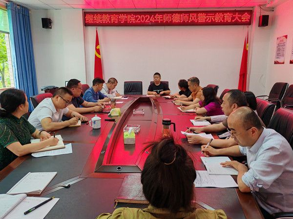为深入学习贯彻习近平总书记关于教育重要论述和全国教育大会精神,扎实推动师德师风建设走深走实,不断提高教职工的职业道德水平。5月13日下午,继续教育学院在院会议室召开师德师风警示教育大会,院全体干部职工参加会议。会议由副院长(主持行政工作)成昊主持。