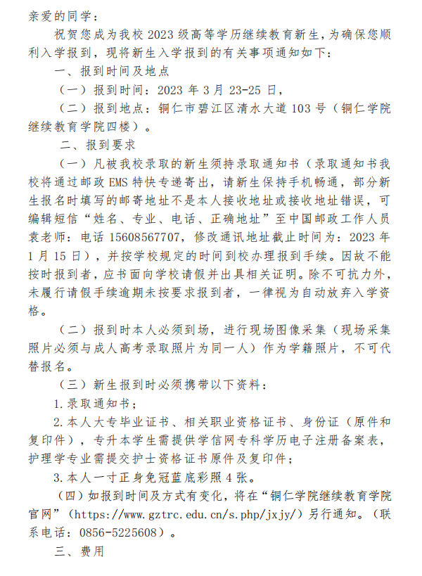 bv伟德国际1946关于2023级高等学历继续教育新生入学报到的通知