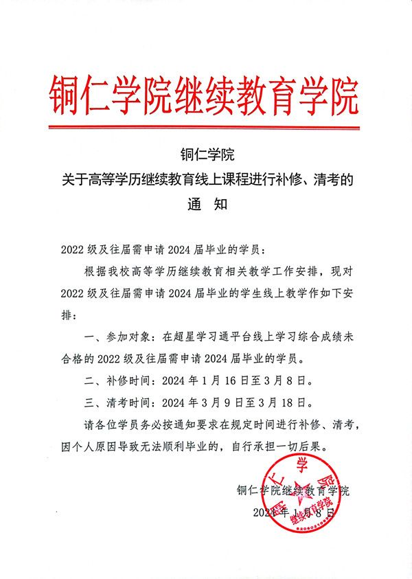 bv伟德国际1946关于高等学历继续教育线上课程进行补修、清考的 通知