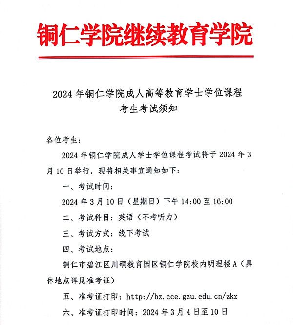 2024年bv伟德国际1946成人高等教育学士学位课程考生考试须知
