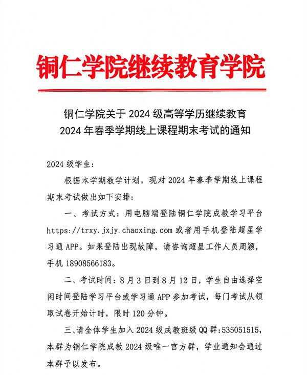 bv伟德国际1946关于2024级高等学历继续教育2024年春季学期线上课程期末考试的通知