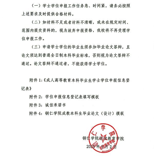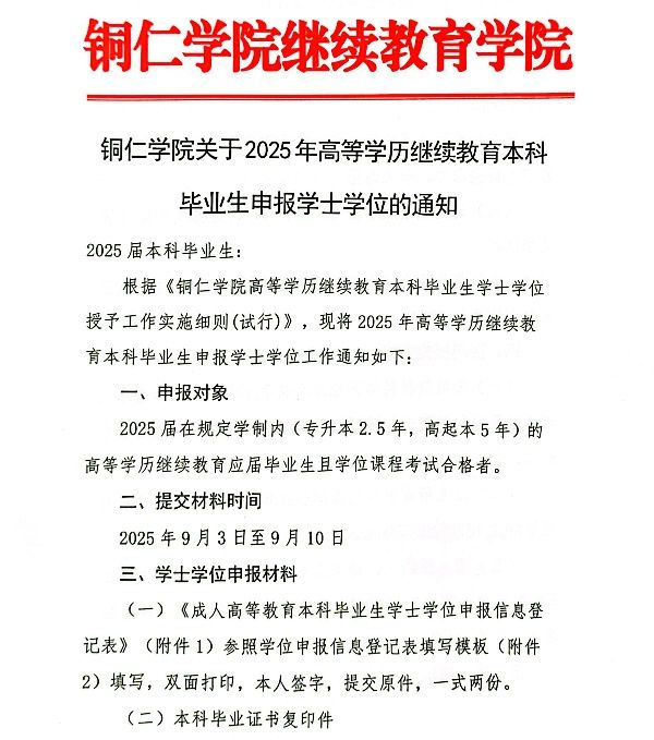 bv伟德国际1946关于2025年高等学历继续教育本科毕业生申报学士学位的通知