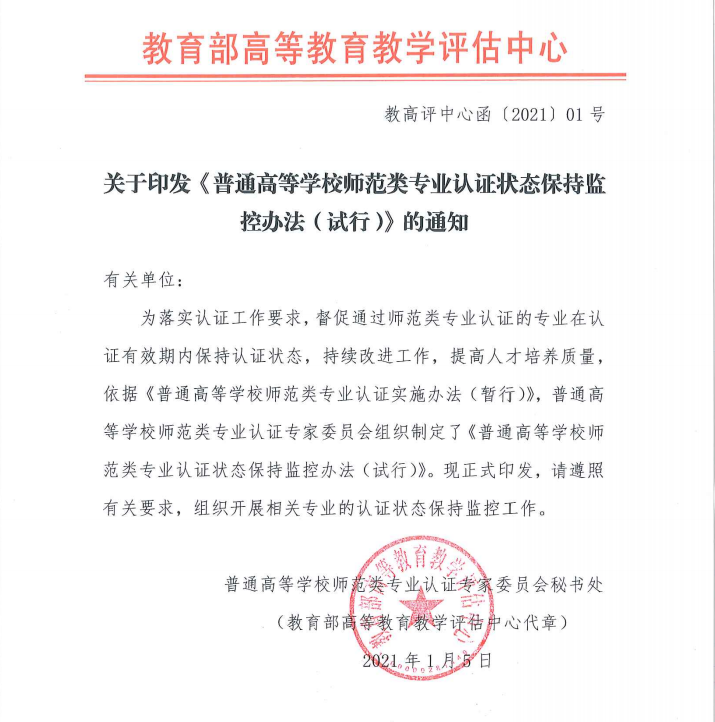关于印发《普通高等学校师范类专业认证状态保持监 控办法(试行)》的通知