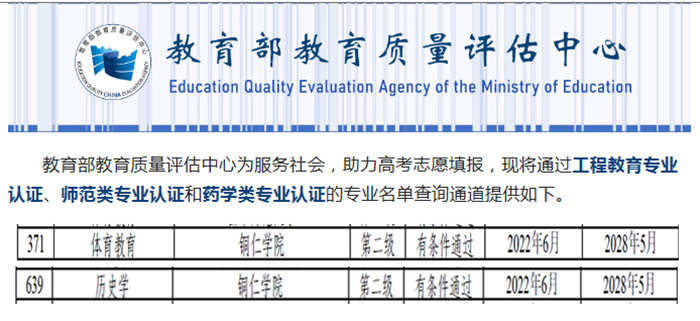 近日,教育部教育质量评估中心公布2019年以来通过普通高等学校师范类专业认证专业名单,伟德官网体育教育、历史学专业通过中学教育第二级认证,认证结论有效期六年(2022年6月至2028年5月)。