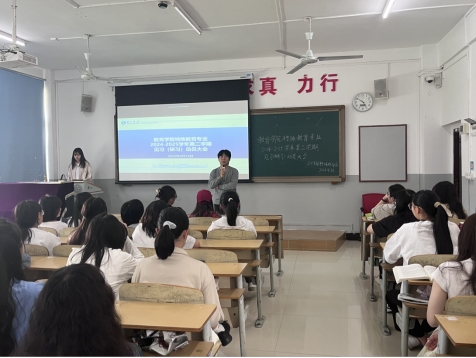 首先,特殊教育系负责人宋健老师强调本次教育见习活动对本专业学生专业成长的意义,其不仅是理论与实践融合的重要环节,更是增强学生社会责任感、职业认同感以及提升专业素养的契机,鼓励同学们以积极的态度投入见习。同时在会上对同学们寄予期望,希望同学在见习期间积极完成学习任务,为提高专业技能打下坚实的基础。其次,由黄守盼老师对教育见习期间同学们的安全问题及纪律问题提出明确要求,包括见习时间、地点等,希望同学们都能按要求进行。随后,黄守盼老师对见习手册的撰写以及其他相关见习任务进行详细且全面地说明。最后,黄守盼老师对本次教育见习大会进行总结,希望同学们在见习期间遵守规则,根据要求完成相关任务,勇于担当责任,以优异的成绩完成本次见习,为特殊教育事业发展增添力量。