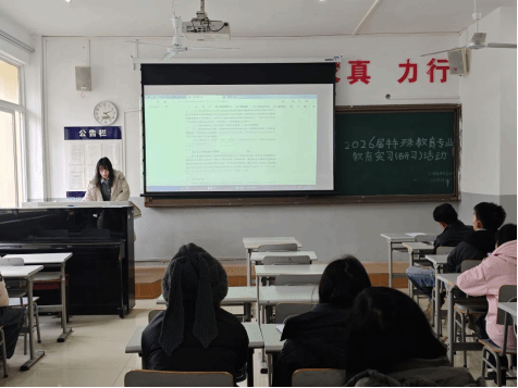 首先,刘方林老师立足学生成长与发展,着重强调了特殊教育实习工作的重要意义。他指出,实习是理论知识转化为教学实践的关键桥梁,不仅是提升专业技能的重要途径,更是锤炼责任担当的宝贵契机。同时,刘方林老师强调,同学们要秉持严谨务实的作风复盘实习点滴,并着重提醒同学们加快毕业论文的完善进度,确保各项任务有序推进。随后,宋健老师与黄守盼老师聚焦实习材料规范,针对实习手册与成长手册的完善工作进行细致指导。两位老师结合特殊教育专业实习的特点,从手册填写的规范性、内容记录的真实性、成长反思的深刻性等方面提出具体要求,强调手册不仅是实习过程的客观记录,更是同学们梳理实践经验、提升专业认知的重要载体,鼓励大家认真查漏补缺,高质量完成材料整理工作。