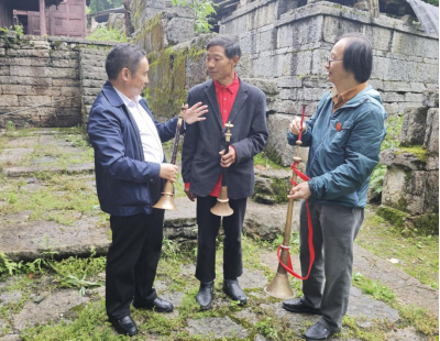 调研组与当地民间艺人交流