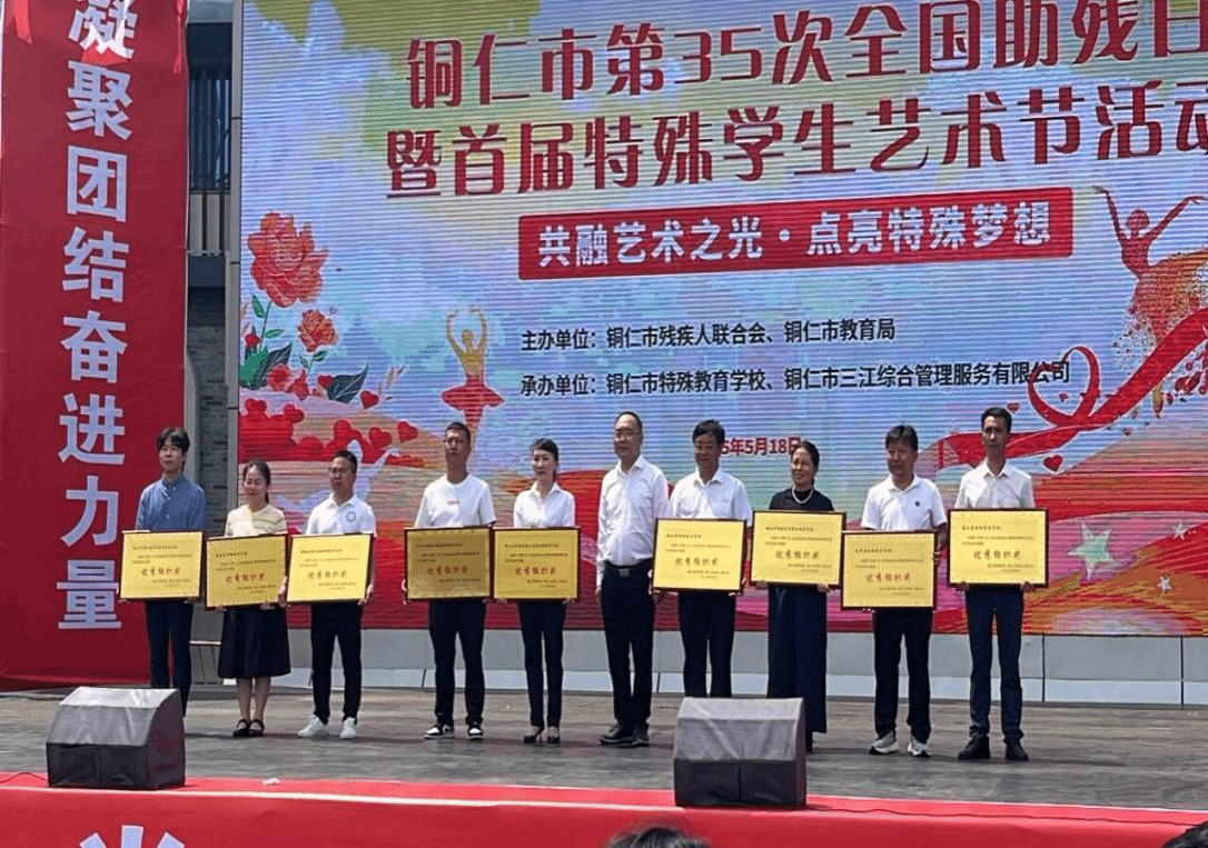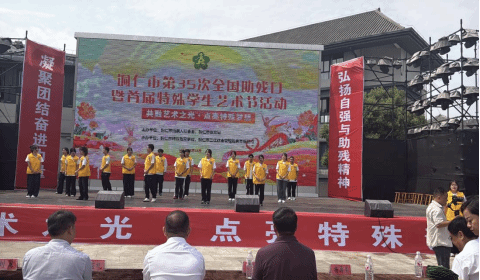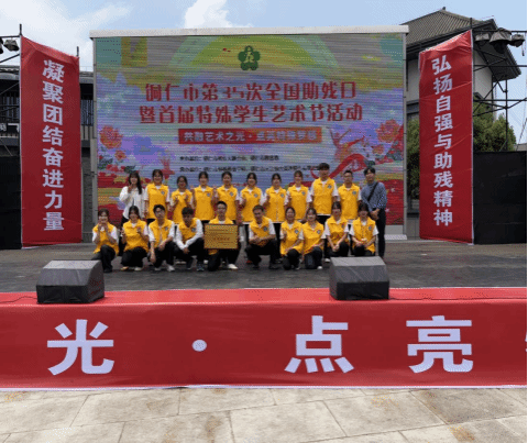 2025年5月18日,在第35次全国助残日到来之际,由铜仁市残疾人联合会、市教育局联合主办的“融艺术之光·点亮特殊梦想”主题活动在中南门古城团结广场举行。bv伟德国际1946教育学院特殊教育系党支部组织19名师生党员及入党积极分子全程参与,最终以原创作品《风的颜色》及专业志愿服务斩获活动荣誉“优秀组织奖”。