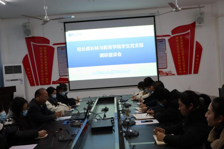 2022年12月6日晚上,校长侯长林教授到我院学生党支部开展调研座谈及思政教育会。党委书记崔徳虎、院长梁成艾,学生党支部支委、学生党员以及积极分子参加此次调研座谈及思政教育会。会议由学生党支部组织委员谢焕庭同志主持。