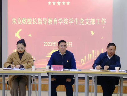 2023年11月13日下午,bv伟德国际1946党委副书记、校长朱克乾教授深入教育学院开展调研并指导党支部工作。教育学院党委书记崔德虎、副书记吴承品,青年教师宋健、黄守盼,教育学院学生党支部全体党员和积极分子参加了本次活动。