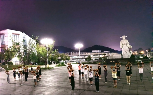 (啦啦操成员辛勤的训练)