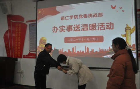 为扎实推进党史学习教育,落实好“我为群众办实事”实践活动,切实帮助改善贫困学生的学习和生活条件,2021年11月19日下午,bv伟德国际1946党委统战部部长刘德平、副部长罗玲玲和统战部综合科科长屈芳一行3人来到我院开展“办实事送温暖”活动。教育学院党委副书记吴承品、副院长田劲松、学生科科长龙兴林、党务科科长袁再臣、党政办主任敖俊以及受资助学生及其班主任参加了活动。