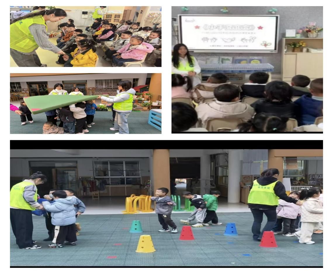 见习首日,同学们在带队教师的统一带领下,满怀热忱地抵达各见习幼儿园。各园负责人首先介绍了幼儿园的办园理念、师资配置、班级构成等基本情况,明确了见习生的工作任务与行为准则,并带领大家参观了园区活动室、游戏区、功能室等场所,帮助同学们直观感受幼儿园的环境创设理念与教学活动组织模式。在随后的四天见习中,同学们严格遵守幼儿园作息制度,全程参与班级日常保教工作:协助带班教师开展晨间接待、教学活动实施、游戏组织、午餐午睡照料等工作,主动观摩优秀教师的课堂设计与互动技巧,积极参与手工制作、节日主题活动策划、班级环境布置等实践任务,在亲身体验中深化了对幼儿教育工作的理解,提升了实际操作能力与沟通协调能力。