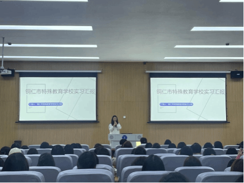 会议伊始,黄守盼老师介绍本次大会旨在深化实习经验交流、推动专业发展。随后各优秀实习生代表依次登台分享实习收获,生动展示了在特殊教育学校、康复机构等实习点构的实习经历,从“教学片段展示”“个别化教育计划制定”“康复技能实操”“班主任工作”等多个角度,全面呈现了实习期间在课堂教学、评估诊断、康复训练等领域的技能提升,分享了实践中的收获与挑战,表达了对指导老师和实习单位的感谢。但部分实习生也提到在实习工作中缺乏沟通技巧,今后要加强与实习单位老师的沟通,还要加强与特殊儿童家长的沟通。同时期望学弟学妹们在以后的实习过程中做到多观察、多请教、多总结、多创新。学会在困难中寻找突破的契机,敢于思考,敢于挑战,从而在实习中积累丰富经验,实现自我提升。实习经验分享结束后,宋健老师充分肯定了2025届毕业生在实习期间的努力与成长,强调特殊教育是一份充满爱与责任的事业,鼓励全体学生坚守教育初心,持续提升专业素养,积极投身特殊教育事业发展。此外,他结合行业发展趋势,对学生们未来的学习和工作提出了殷切期望,希望大家不断探索创新,为特殊学生创造更美好的未来。最后,由黄守盼老师对本次大会进行总结,再次强调实习对专业成长的重要意义,鼓励学生们将实习经验转化为前进动力,在特殊教育领域深耕细作。