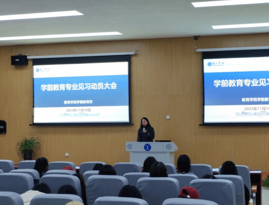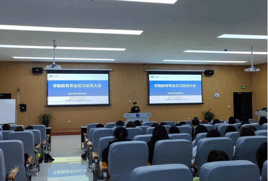 为了使学生更好地了解见习任务及见习安全注意事项,提高学生的安全防范意识,我院学前教育专业于11月10日晚在博思楼105开展见习动员大会。学前教育系主任杨瑛、学前教育专业实训教研室主任杨松慧及2021级、2022级全体学前教育专业学生参加本次大会。
