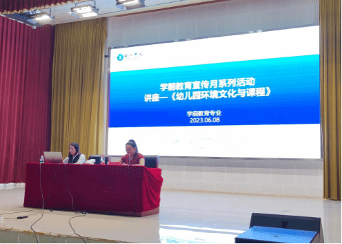 为了落实《省教育厅关于开展2023年学前教育宣传月活动的通知》,进一步营造全社会高度重视学前教育专业的浓厚氛围,形成有利于学前教育专业发展的良好环境,提高学生对学前教育专业的认同感。近日,我院学前教育专业邀请了铜仁市第十六幼儿园园长时晓芳在人文生态馆,为学前教育专业全体师生开展了《幼儿园环境文化与课程》的专题讲座,学前教育专业实训教研室主任杨松慧主持活动。