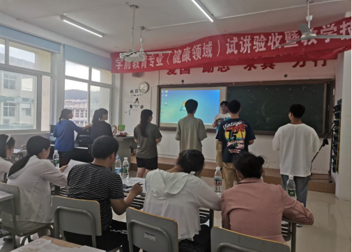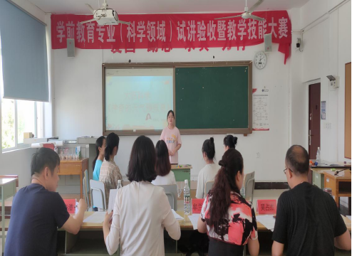 为提高学生教学技能,检验学生试讲准备情况,6月14日下午,学前教育专业在明理楼三楼、四楼开展了试讲验收暨教学技能大赛活动。此次试讲验收内容包括五大领域八大内容,分别是健康领域的体育游戏及健康基础、语言领域、社会领域、科学领域的科学探究及数学认知和艺术领域的音乐及美术活动。本次试讲验收及比赛活动的评委由学前教育系全体老师及幼专老师共同组成,2019级全体学生及幼专联合培养的学生共同参与此次验收活动。