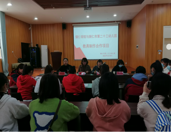 为支持易地扶贫搬迁幼儿园课程资源库建设,同时也为提升学前教育专业学生玩教具制作的能力与水平,搭建高校-幼儿园协同育人的平台,近日我院学前教育专业与铜仁市第二十三幼儿园签署了玩教具制作合作协议,参加本次签约活动的有教育学院副院长田劲松、实践教研室主任杨松慧、玩教具课程负责人李娜、胡树斌老师及2019级、2020级10名玩教具制作项目课程组组长。