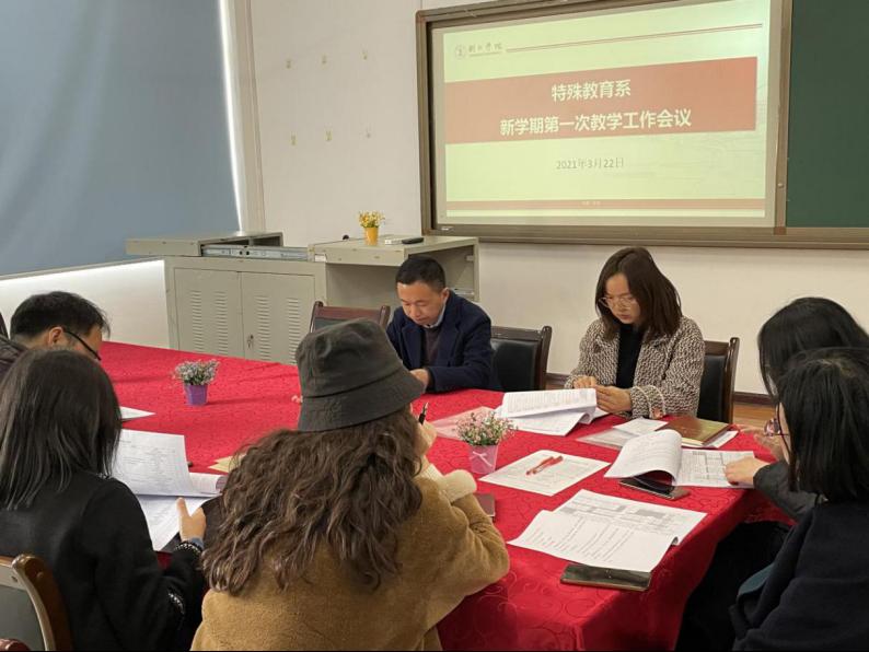 3月22日,特殊教育系召开了特殊教育专业人才培养方案论证会暨系部第一次教学工作会议。特殊教育系全体教师参加了本次会议,会议由系主任彭霓主持。