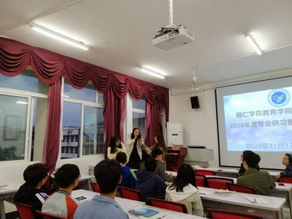 为进一步促进特殊教育专业建设,丰富专业学生研习形式,让特殊教育专业学生切实了解一线教学情况,特殊教育系于2020年11月17日至11月19日在明理楼B302教室开展了2020年度专业研习暨学术沙龙活动。本次活动邀请的嘉宾有铜仁幼儿师范高等专科学校肖乐老师、铜仁宏昕康新中医医院儿童康复中心杨莎主任、铜仁宏昕康新中医院姚小艳老师,特殊教育系系全体师生参与。