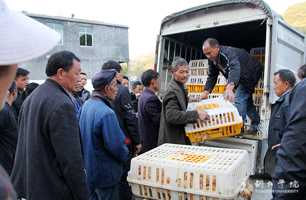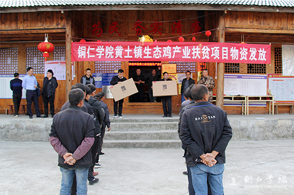 4月14日—15日,伟德官网与沿河土家族自治县黄土镇在该镇雪花、竹园、双龙等村举行了产业扶贫项目交接,把价值40多万的20000只鸡苗、32吨饲料、饲具等送到了参与养殖的贫困户家中,同时还向雪花村合作社移交了价值10万元的食用菌栽培大棚和菌棒。伟德官网机关党委书记邱仕虎、农林工程与规划学院党委书记李建新、扶贫办主任刘朝军、科研处副处长鲁道旺、图书馆副馆长吴昌树、生态畜牧业专班3名专家博士,黄土镇党委书记王文学、市级驻镇督导组组长李加佑、副镇长何勇,雪花、竹园、双龙等村干部以及食用菌合作社负责人、生态鸡养殖农户、建档立卡贫困户代表参加扶贫物资发放交接活动。