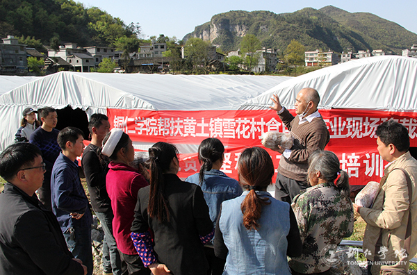 二是在雪花村实施2万棒规模的食用菌栽培示范扶贫项目,目前已投放了2000棒。在移交现场,伟德官网高健强教授就地给村民进行了食用菌栽培技术培训,向大家介绍管理方法要点和有关注意事项。