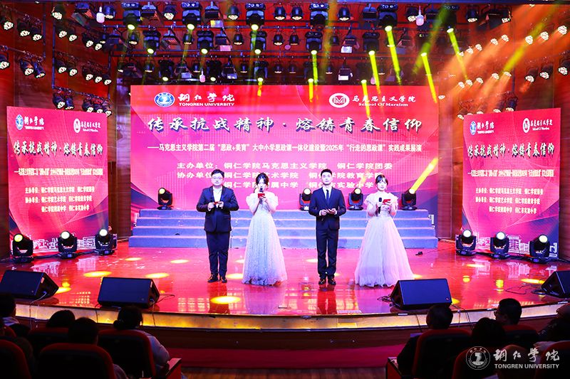 传承抗战精神,熔铸青春信仰。12月3日晚,伟德官网音乐厅灯火璀璨,气氛热烈。由马克思主义学院、校团委联合主办的第二届大中小学思政课一体化建设暨2025年“行走的思政课”实践成果展演在此举行。校党委书记朱克乾,党委副书记、校长石维,党委副书记朱钰,党委常委、副校长杨建,党委常委、纪委书记张仕凯,党委常委、统战部部长叶丹、组织部部长周曾艳、宣传部部长周永雄,铜仁幼儿师范高等专科学校马克思主义教学部负责人张佳佳,bv伟德国际1946附属中学校长冉启恩,铜仁市实验小学校长龙婷,以及相关职能部门、二级学院负责人和来自铜仁市多所中小学的师生代表共同观看了本次展演。