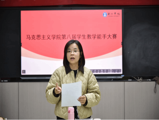赛后,李芬老师进行了总结点评。她肯定了选手们在教学环节中的创意与热情,同时建议大家在课堂节奏把控上更灵活,在教学语言上也要“更出彩”。讲课不能只满足于“讲清楚”,更要学会在有限时间里,把最关键的知识点讲完整、讲扎实。