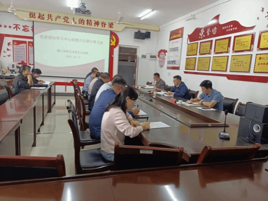 10月12日,我院党委理论学习中心组2024年第六次集中学习研讨会在马克思主义学院会议室召开。校党委书记朱克乾,党政办副主任何波,联络员敖俊到会指导。院党委书记张江林主持会议。院党委委员,各科室负责人,各支部书记参加会议。