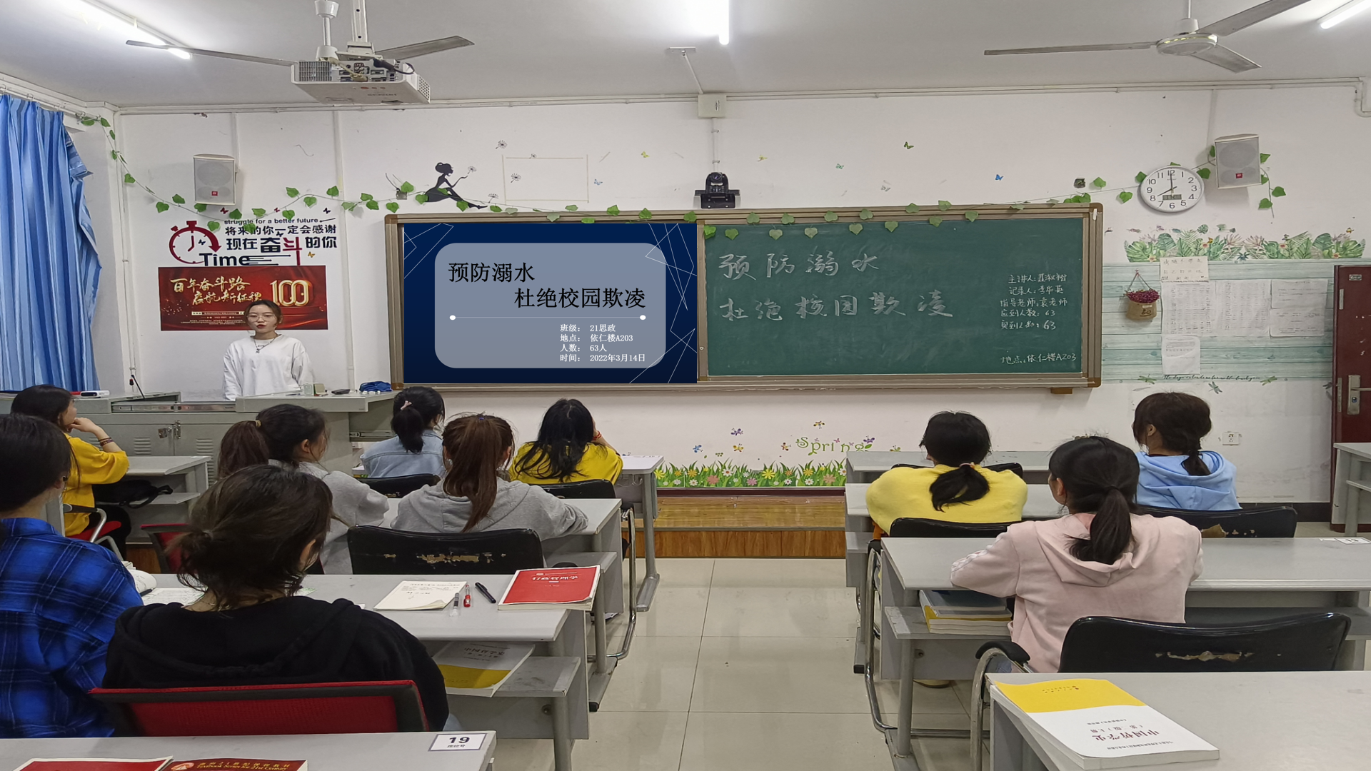 3月14日晚,我院分别在依仁楼A202、203、204教室开展了“预防溺水 杜绝校园欺凌”主题宣传教育活动,活动由各班主持人负责,我院大一、大二、大三共180余名同学参加了此次活动。