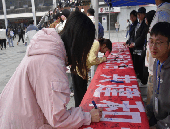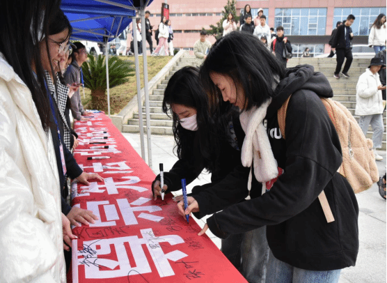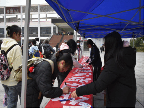 活动过程中,工作人员为同学们讲解了宪法有关知识,且呼吁我们青年更要认真学习宪法知识,坚定宪法自信,弘扬宪法精神,共同努力建设和谐社会。学习了解后的师生们纷纷表示收获颇多,并依次在横幅上签下了自己的名字,表达出师生们知法懂法守法的决心。通过学习宪法可以提高我们的法律意识,正确维护权利与履行义务,积极投身于社会主义法治建设。