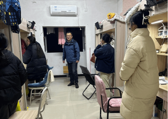 每到一个寝室,老师们亲切的与同学们拉家常,并了解同学们最近在学校的学习、生活情况。接着,老师们耐心地对每一张床位上的被子厚薄程度进行了摸排,特别提醒近期气温变化较大,询问同学们被褥是否充足,棉服是否够厚,热水温度是否适宜等,并叮嘱大家注意保暖、预防感冒。李兢书记重点强调了安全问题,提醒同学们务必注意寝室用电安全以及回家乘车安全,同时也了解到同学们的寒假假期去向。赖全副院长主要走访了研究生同学的寝室,他对同学们存在的困难进行了摸排,以便帮助困难学生顺利度过瑟瑟寒冬日。临近期末,老师们也嘱咐同学们要好好复习,认真备考。争取一学期学有所获,成果经得起考验,祝愿同学们期末都考出好成绩。