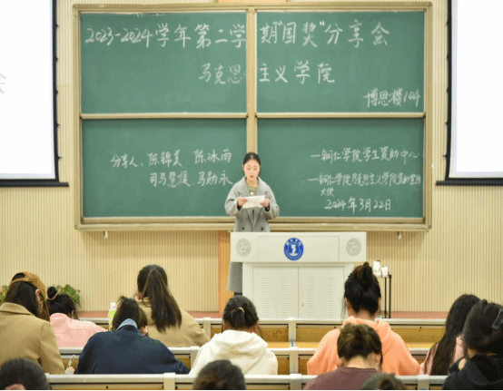 为帮助我院学子更好地规划学业,提升学习能力,彰显“国奖”获得者的榜样力量,2024年3月22日晚上,我院在博思楼104举办2023-2024学年第二学期“国奖”分享会。本次分享会邀请了我院22级陈锦美,21级陈冰雨、20级司马慧媛、马勋永四位国家励志奖学金获得者做经验交流分享,由我院20级蒙富英主持,全体22级和23级学生参与。