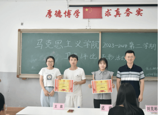 为进一步促进同学们养成良好的文明生活习惯,营造良好的生活环境氛围。6月14日上午,我院在依仁楼A203教室举办2023-2024学年第二学期文明教室和文明寝室卫生评比表彰大会。我院团总支书记迟婕老师、思政部负责人王晨老师、刘克彬老师以及获表彰班级和文明寝室代表参与此次表彰大会。