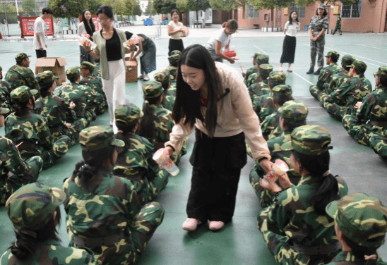 尽管天气暑热,同学们仍以最好的精神面貌参加各个项目的训练,休整间隙,学生干部带着清凉解暑的饮料,逐一走到新同学们面前,用亲切的话语表达了对他们军训努力的肯定和鼓励。在慰问过程中,新同学们纷纷表示感谢来自学院的温暖和关怀,更加坚定了完成军训任务的决心。随后,迟婕书记强调,军训是大学生活的重要一课,不仅能够锻炼大家的体魄,还能够培养他们的意志力和团队精神。因此,她希望通过这次慰问活动,让新同学们感受到学院的关怀和支持,从而更加积极地投入到军训中去,克服困难,提升意志,端正态度,认真训练,交出一份圆满的军训答卷。