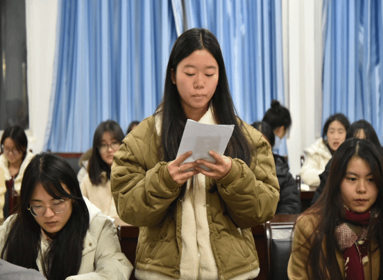 随后,学生会主席韩杭对本学期各项活动进行了总结,并对本学期团总支学生会全体成员的工作表现表示肯定和赞许。他着重分析了几个共性问题,包括活动前期准备不足、工作安排和交接不当以及成员积极性不高等。他指出,在活动策划与执行方面需要更加注重细节,并进一步完善部门之间的沟通协作。同时他鼓励大家要树立主人翁意识,加强责任意识与服务意识,以高度的责任感和热情投入到工作中。