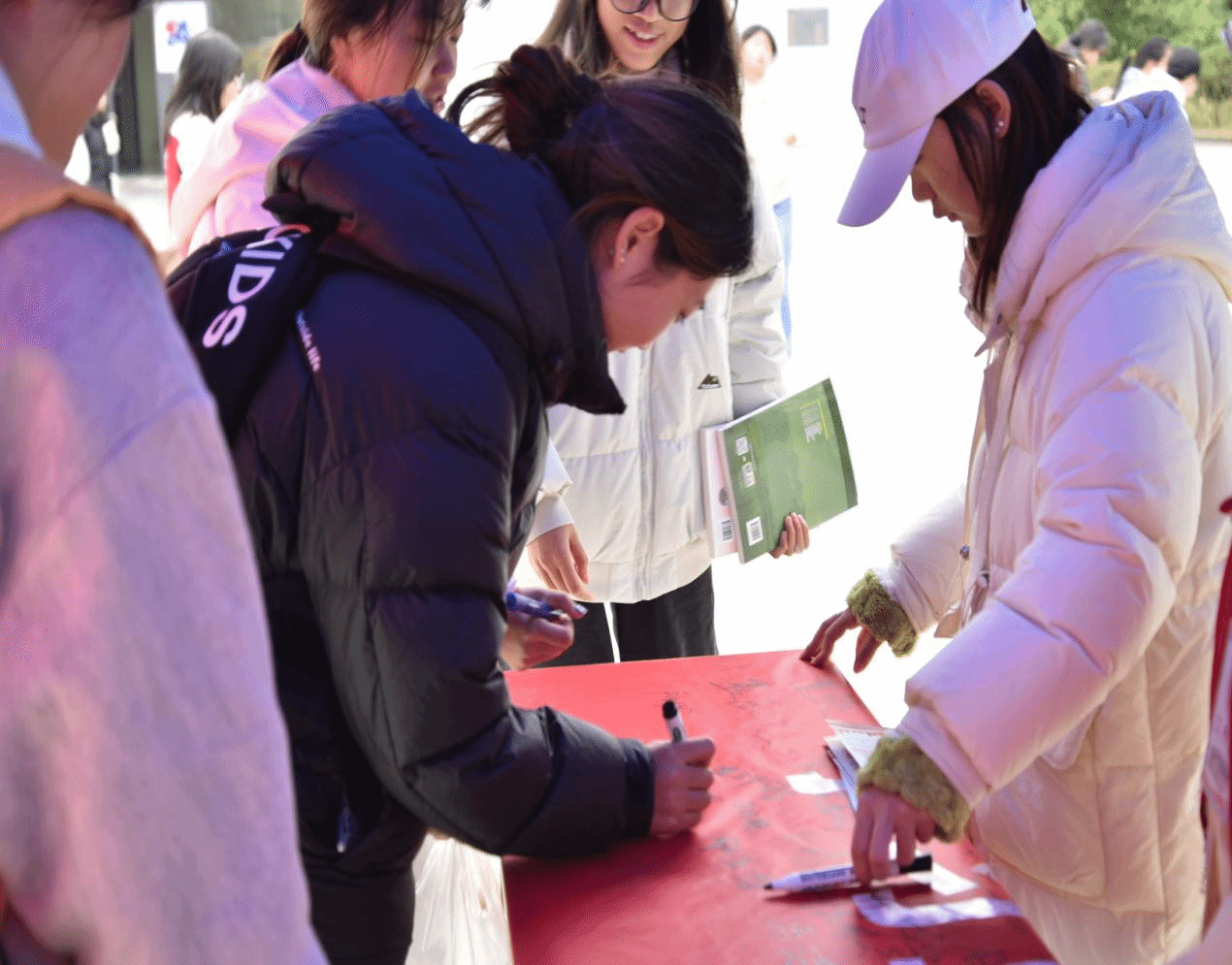 活动现场,工作人员精心布置宣传展区,悬挂学习宣传贯彻主题横幅。志愿者们化身“宪法宣传员”,向来往师生发放宪法知识手册,并结合案例讲解宪法在日常生活中的应用场景,细致解答大家关于法律维权、权利保障等方面的疑问。通过志愿者们的宣传,不少师生在主题横幅上郑重签名,表达尊法、学法、守法、用法的坚定信念。宪法作为国家的根本大法,是治国安邦的总章程,是保障公民权利的根本遵循,更是凝聚民族力量、推动国家发展的法治根基。当代师生作为新时代的建设者和接班人,学习宪法、尊崇宪法、践行宪法是义不容辞的责任与使命