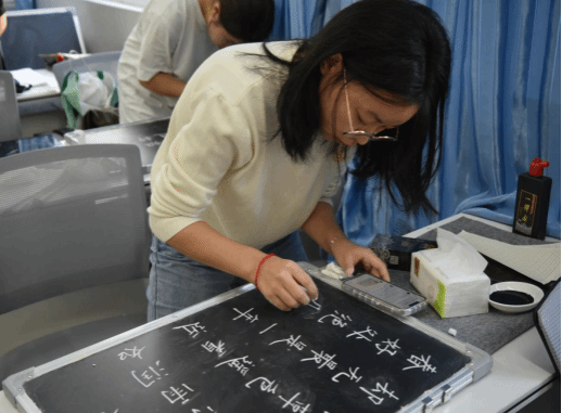 本次大赛面向我院全体学生,特邀招就处赵坤老师担任评委。赛前,工作人员为参赛人员准备粉笔、毛笔、小黑板、宣纸等一系列物品,以方便同学们参赛时使用。比赛时,赵坤老师到场监督指导,各部门工作人员认真负责,秉持公平公正公开原则开展工作。赛场上同学们认真书写,感受古诗文魅力的同时书写出一幅幅或端庄,或娟秀,或雄劲有力的硬笔、粉笔、毛笔书法作品。最后,经过评委老师的仔细评选,共评选出一等奖一名,二等奖两名,三等奖六名,优秀奖五名。