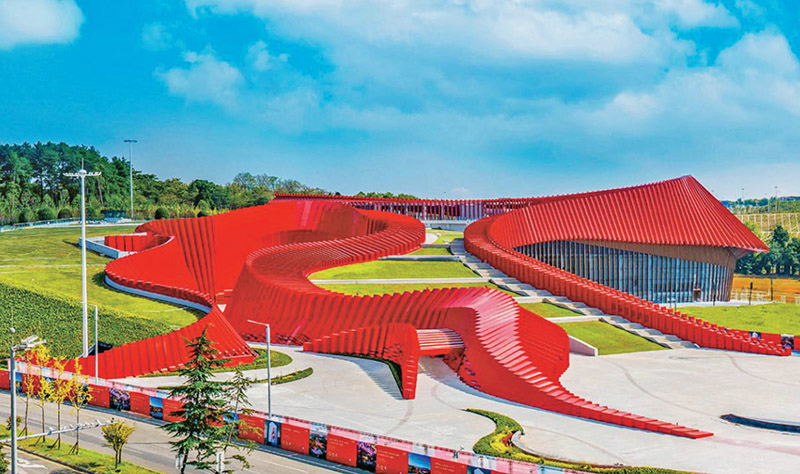 2024年10月22日,紧邻贵阳龙洞堡国际机场,以长征为主题的全域行浸式数字体验馆——贵州长征文化数字艺术馆(红飘带)正式运营,成为多彩贵州文旅“第一站”。图为贵州长征文化数字艺术馆(红飘带)。贵州省委宣传部供图