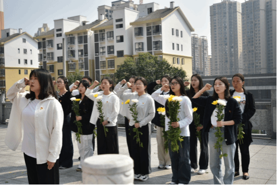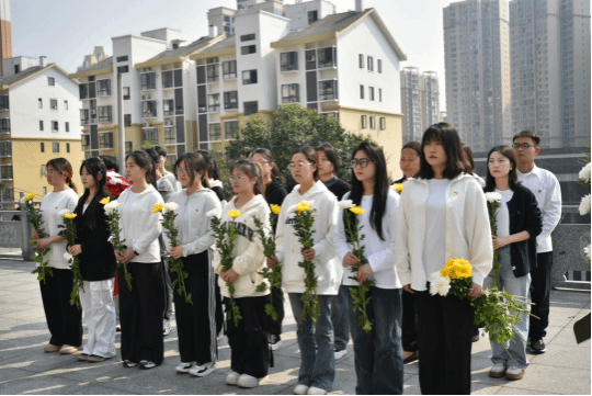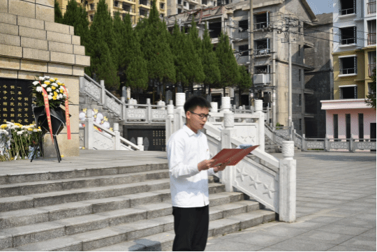 上午9点,参与此次活动的全体师生在学院门口集中统一前往铜仁市文笔峰烈士陵园。到达陵园后,在我院团总支学生会组织部成员夏金凤的主持下,师生们向革命烈士敬献花篮、整理缎带、静立默哀三分钟,深切怀念为民族独立和人民解放事业献出生命的英烈。然后,由党员代表吴光胜介绍文笔峰烈士陵园,让同学们更加深入了解了革命烈士的丰功伟绩。紧接着,党员代表翟丽林带领党员重温了入党誓词,党员同志们紧握右拳,面向党旗,庄严宣誓,表达了对党的忠诚和对革命事业的坚定信念。随后,党委副书记李兢作了讲话,她强调,我们应当怀揣着感恩之心,铭记历史,珍惜当下,继续传承革命烈士对党忠诚、信念坚定、敢于担当、不怕牺牲的精神,不断提升自我,努力成长为新时代的好青年。最后,大家有序地向革命烈士纪念碑敬献白花,祭扫烈士陵墓。