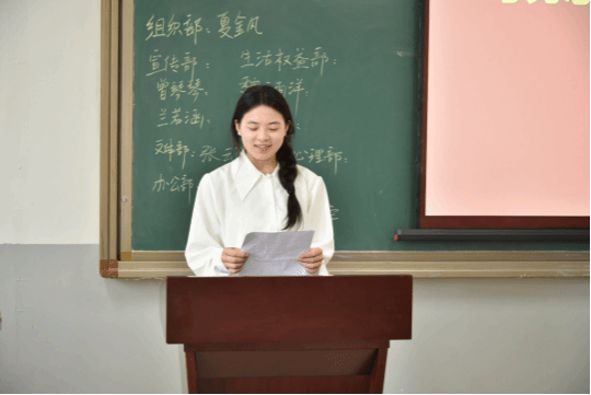 大会伊始,韩杭介绍本次换届大会的议程。随后,团总支副书记黄纳纳作工作总结,她回顾三年来在学生会的成长轨迹,分享了工作经验与成长感悟,字字传递着对团队的热爱与对过往的珍视。同时,寄语新一届干部,期望他们能持续传承优良传统,不断提升自身能力,为学院蓬勃发展贡献更多坚实力量。紧接着,各部门候选人分别从工作经历、竞争优势以及对未来工作计划等方面进行竞选演讲。本次竞选采用现场无记名投票方式进行,由非学生会成员陈艳以及主席团成员温佳欣进行现场监票、唱票。大会选举出组织部负责人夏金凤、宣传部负责人曾琴琴、文体部负责人张云燚、生活权益部负责人王钰颖、学习心理部负责人龙川、办公室负责人冉娟兰。新任主席团成员分别是李远芳、陈洪、张礼条;团总支副书记杨琳、陈光美,并上台发言。
